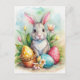 Tarjeta de vacaciones de conejito de Pascua y huev