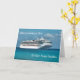 Tarjeta de vacaciones de crucero con la imagen de un crucero en el agua.