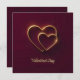 Dos corazones superpuestos con un contorno dorado en un fondo rojo profundo, con un efecto suave de brillo. El texto "Día de San Valentín" está centrado debajo de los corazones.