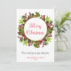 Esta elegante tarjeta de vacaciones es perfecta para enviar saludos de Navidad a su familia y amigos. El diseño moderno cuenta con una colorida corona de bayas con un marco dorado brillante que rodea "Feliz Navidad" en escritura de caligrafía. Su mensaje personal, nombre y año están debajo. La parte trasera de la tarjeta cuenta con bordes de vegetación botánica. ¡Celebre la temporada con esta elegante y elegante tarjeta de Cherry Lane Designs!
