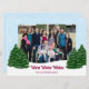 Celebre la belleza del invierno con esta tarjeta de felicitación ilustrada. Los árboles de hoja perenne en un bosque de nieve, contra un fondo de copos de nieve, evocan la calma y la belleza tranquila de la temporada navideña. Es el fondo perfecto para mostrar tu foto favorita.