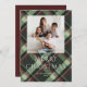Esta divertida tarjeta de felicitación navideña con foto de 5" x 7" presenta un diseño de cuadros burgundy y verde pino con espacios en blanco para cuatro de tus fotos favoritas y tu nombre. La felicitación personalizable es, "Feliz Navidad".