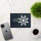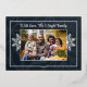 ¡Tan hermoso, querrán exhibir esta tarjeta de Navidad todo el año! Con láminas de papel de aluminio reales brillantes, esta tarjeta de aspecto oscuro y elegante expresa simplicidad y tranquilidad. Los copos de nieve blancos en capas resaltan sobre un fondo azul marino profundo, y la lámina de aluminio agrega el toque de clase y refinamiento. ¡Esta tarjeta no grita Navidad! La insinúa. Los saludos en el anverso y el reverso de la tarjeta se pueden personalizar fácilmente directamente en la plataforma. Y puede encontrar la foto familiar favorita para agregar. ¡Disfrute de esta tarjeta!