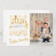 Tarjeta de vacaciones de foto de año nuevo personalizada con acentos dorados