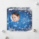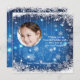 Un impresionante diseño azul y blanco con bordes de copos de nieve, copos de nieve en cascada y una ventana de imagen redonda para tu foto favorita. Perfecto como tarjeta de vacaciones o invitación para una fiesta de cumpleaños de invierno. La tarjeta es fácil de personalizar con tus palabras, fuente, color de fuente y elección de seis tipos de papel.