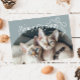 Tarjeta de plantilla de fotos de gato para Navidades inteligentes con un texto gracioso que dice "Navidades Meowy". Añade fotos de tu gato en esta tarjeta de marco azul de piedra. Hay un ilustracion de arco.