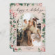 Esta tarjeta de vacaciones moderna presenta su foto favorita de vacaciones en forma de arco decorada con elegantes botanicas invernales. Para hacer cambios anticipados, seleccione Personalizar -> Editar usando la herramienta de diseño.