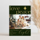 Tarjeta de vacaciones de foto plana dorada y verde. Envía saludos familiares con esta elegante tarjeta de Navidad con tema dorado y verde. Agrega fácilmente tu foto familiar o la foto de tu nuevo bebé para un toque personal.