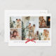 Diseño de tarjeta de vacaciones minimalista que destaca un collage de la foto de su familia. Con un borde limpio y un lazo rojo festivo, es la forma perfecta de enviar saludos de la temporada a sus seres queridos.