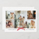 Diseño de tarjeta de vacaciones minimalista que destaca un collage de la foto de tu familia. Con un borde limpio y un lazo rojo festivo, es la forma perfecta de enviar saludos de temporada a seres queridos.