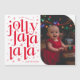 La tarjeta de Navidad con foto caprichosa Jolly Fa La La La es una forma alegre y vibrante de difundir la alegría navideña. Esta tarjeta de Navidad presenta una sola foto emotiva acentuada por un gran texto rojo festivo que dice: "Es la temporada para estar alegre fa la la la".