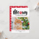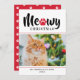 Desee a su ser amado un "Navidad Meowy" con una divertida tarjeta de fotos con su gato mascota. El diseño moderno y elegante incluye una foto panorámica favorita de su fumarín con un guión negro con un acento de huella de pata de color rojo. Un patrón de coordinación de huellas de pata blanca se viste por el lado posterior de la tarjeta.