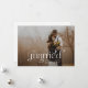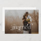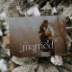Sencilla y retro tarjeta vertical de dos fotos para los recién casados que celebran su primera Navidad juntos como marido y mujer con un tipo de letra vintage que dice "Feliz y casado".