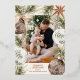 Un marco de pinos, ornamentos y estrellas inspirado en boho rodea tu foto favorita en este encantador diseño. Tu saludo en los titulares está en Relieve metalizado real: oro, oro o plata subió. Puede añadir fotos y texto en la parte posterior.