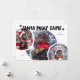 Tarjeta de plantilla de fotos de vacaciones mínima y moderna con 3 fotos de tu cachorro en el frente con un divertido texto de tipografía que dice "llegaron las patas santa". También puede agregar otra imagen y mensaje en la parte posterior. El fondo es blanco.