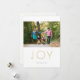 Purpurina JOY Photo Holiday Card Esta temporada de vacaciones envía saludos que brillan y brillan. Agrega tu propio mensaje e incluye el nombre de todos. ¿Más para compartir? Hay espacio para fotos adicionales y deseos en la parte de atrás. NOTA: Este diseño no incluye Relieve metalizado oro real ni purpurina. Es una imagen de alta calidad para simular Relieve metalizado de oro o purpurina.