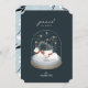 Esta caprichosa moda " paz en la tierra " navidades y tarjeta de saludo de vacaciones presenta un globo de nieve con osos polares bajo el cielo estrellado de la noche con nieve. Hay un oso polar mamá que lleva un árbol en su espalda, y un oso polar está llevando un adorno en un fondo azul oscuro/azul marino con falsas estrellas brillantes de oro y nieve. El reverso presenta un fondo azul de pizarra clara con patrones de osos polares, bayas y hojas. Personalízalo para tus necesidades. Puedes encontrar productos coincidentes en mi tienda.