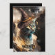 Una divertida tarjeta artística de Halloween con un gatito con sombrero de bruja en una noche oscura estrellada.