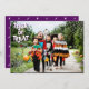 Tarjeta de vacaciones con foto de Trick or Treat. Desea a tus amigos y familiares un feliz Halloween con esta tarjeta de una sola foto. Este diseño presenta telarañas y la frase "Trick or Trick" en la parte delantera y un patrón espeluznante sobre un fondo púrpura en el reverso.