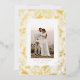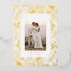 Dibujos delicados de botánica invernal crean un marco prensado en hoja de aluminio en esta elegante tarjeta de vacaciones con una sola foto. Pino, hoja perenne, bayas, follaje.