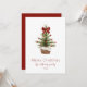 Celebre la temporada con esta elegante tarjeta de Navidades acuáticos que incluye un árbol de Navidad pintado a mano adornado con ornamentos rojos y un arco festivo. Personalizado con el nombre y el año de su familia, el diseño frontal ofrece un cálido saludo de "Feliz Navidad". La parte posterior incluye un mensaje de feriado sincero que se puede personalizar con cualquier texto de su elección. Perfecto para mandar amor y alegría a amigos, familia y colegas esta temporada de vacaciones.
