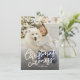 "Navidades Cortesía" con la mano escrita en blanco contra tu adorable foto mascota y rayada roja hacia atrás con un lugar para el texto personalizado