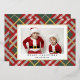 Personalice este clásico diseño de tartán beige, rojo y verde con su propia foto y saludos para una tarjeta de Navidad elegante que traerá alegría a sus seres queridos. La parte frontal de la tarjeta tiene lámina real.