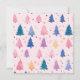 Tarjeta de vacaciones con ilustraciones de árboles de Navidad lindos en un esquema de colores pastel con una foto familiar emparejada con un saludo de vacaciones y su nombre y año en una fuente sans serif.