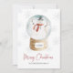 Esta tarjeta de vacaciones linda y caprichosa presenta un hermoso muñeco de nieve de acuarela en un globo de nieve con copos de nieve gris pálido. La parte trasera de la tarjeta incluye un mensaje para personalizar o déjala en blanco para eliminar el mensaje.