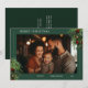 Tarjeta de vacaciones de Navidad plana con verde con foto. Personalice la parte delantera con amor, nombre de la familia y año. Personalice el mensaje del reverso, con amor y nombre de la familia.