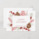 Un sencillo logotipo de negocios navidad una tarjeta de bienvenida de vacaciones verde. Esta tarjeta de felicitación de vacaciones para navidades corporativos cuenta con un elegante marco floral para navidades con eucaliptos y conos de pino. Todo el texto se puede personalizar y la plantilla del logotipo en la parte posterior de la tarjeta se puede intercambiar con cualquier logotipo que elija. La tarjeta de vacaciones corporativa perfecta para agradecer a todos sus clientes por su negocio.