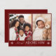 Tarjeta de vacaciones de Navidades de escritura religiosa. Esta hermosa tarjeta de foto navideña presenta un fondo rojo con "déjennos adorarlo" escrito tanto en un clásico tipo de letra serif como en un tipo de letra escrito a mano en bonito, en blanco, con dos estrellas en ambos lados. Esta tarjeta también incluye dos fotos de tu familia y tu nombre. En el reverso está el mismo fondo rojo, al que se puede añadir otra foto o texto adicional seleccionando la opción "editar usando la herramienta de diseño".