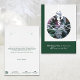 La plantilla de tarjeta de vacaciones de negocios con lámina de plata verde y blanca Chic es una forma impresionante de enviar saludos personalizados de vacaciones a sus valiosos clientes. Parte de la Colección de Material de Marketing Florista Verde, esta tarjeta de retrato plana presenta elegantes acentos de lámina de plata en una foto con tema navideño que enmascara un adorno de Navidad, colocada sobre un fondo blanco crujiente. La parte delantera muestra el saludo "Deseándole una Temporada de Paz y Alegría" en una fuente elegante que mejora la marca festiva de su empresa.