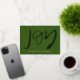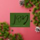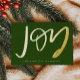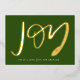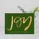 Una audaz "JOY" en verde y oro adorna esta tarjeta festiva de vacaciones.