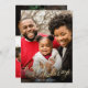 Envía deseos de Navidad a tus familiares y amigos con esta sencilla tarjeta de papel de oro falso. Una foto en la parte delantera y tres fotos en la parte trasera están acompañadas de puntos de purpurina dorada. El estilo moderno y minimalista hará que tus fotos familiares brillen.