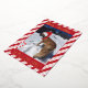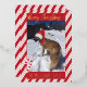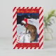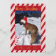Una tarjeta festiva de vacaciones con papel de aluminio dorado y un patrón de rayas de bastón de caramelo rojo. También hay un pequeño bastón de caramelo y una pequeña ramita de bayas rojas en la parte inferior derecha e izquierda. Personalízala con la foto favorita de tu perro (o mascota), tu saludo de Navidad y el nombre de tu familia. (La imagen en la plantilla es mía y está protegida por derechos de autor.) © ArianeC Illustrations - Todos los derechos reservados