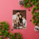 Tarjeta de vacaciones de papel foil con foto de familia bendita.