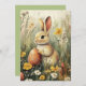 Tarjeta de vacaciones de Pascua de Nochebuena de primavera ilustrada. Celebra la alegría de la primavera con esta tarjeta de vacaciones de un dulce conejito rodeado de flores silvestres, sentado junto a un huevo de Pascua floral, perfecta para enviar un toque de calidez estacional. DM si quiere este producto en otros diseños.