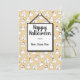 Tarjeta de vacaciones personalizable con patrón de fantasmas felices de Halloween Doodle.