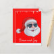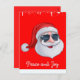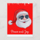 Tarjeta postal divertida de Papá Noel con gafas de sol Paz y Alegría. Ideal para esta próxima temporada. Es genial para tus clientes, o familiares y amigos. Deséales una Feliz Navidad.