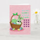 Este diseño muestra un conejo de dibujos animados en verde lima brillante asomándose desde una cesta marrón rústica y tejida, lo que da a la escena un ambiente amistoso y afectuoso 🐰. Sus grandes ojos oscuros y su nariz rosa están dibujados con una ternura suave, como si se inclinara hacia adelante para saludar a alguien que le importa. Unas orejas largas y erguidas enmarcan su rostro, y una pequeña cola blanca esponjosa se asoma justo encima del borde de la cesta. Un lazo en forma de hoja en verde a juego adorna la cesta, uniendo al personaje y al entorno. Alrededor y dentro de la cesta hay formas de huevo rayadas en púrpura, amarillo, azul claro y verde, esparcidas como pequeñas sorpresas de una búsqueda primaveral 🌷. El fondo es de un rosa apagado con patrones circulares tenues y superpuestos que añaden una textura suave sin distraer de la figura principal. En el lado derecho, un saludo de temporada aparece en azul verde con acentos verde oscuro, colocado encima de una cuadrícula ordenada de icon
