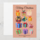 Tarjeta de vacaciones simple y moderna con un diseño minimalista con ilustraciones de regalos coloridos. Una tarjeta de felicitación sin foto alegre perfecta para enviar cálidos deseos estacionales con un aspecto limpio y elegante. Totalmente personalizable.