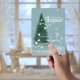 El color azul-verde de un bosque secreto, donde los árboles están mágicamente decorados para las vacaciones . Envíe sus saludos con una foto así con un Relieve metalizado brillante para adornos y nieve.