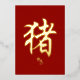 Celebrar a las personas nacidas en el Año del Cerdo. Esta elegante tarjeta de Relieve metalizado dorado tiene un diseño sencillo del carácter caligráfico para cerdos, con texto pequeño en inglés. Puede hacer clic para editar el diseño y agregar un mensaje personalizado.
