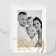 Comparte un saludo de vacaciones y fotos familiares favoritas en este moderno diseño inspirado en la nieve con un verdadero titular de Relieve metalizado.