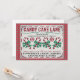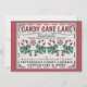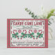 Se propaga la alegría de las vacaciones con esta caprichosa tarjeta plana con un cartel de estilo vintage "Candy Cane Lane" adornado con latas de caramelo envueltas en el arco contra un fondo festivo de yeso rojo. Personalice la parte trasera con su propio saludo de vacaciones personalizado para un toque agradable y encantador. Perfecto para enviar a familia, amigos o compañeros de trabajo para alegrar la temporada con el clásico capricho de las vacaciones.
