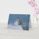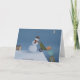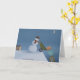 En una divertida tarjeta de vacaciones vemos a un muñeco de nieve tirando herramientas de remoción de nieve por un acantilado bajo la cubierta de la oscuridad. La leyenda dice "Estrategias de supervivencia de hombres de nieve".