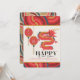 Esta moderna tarjeta navideña china de año nuevo presenta un dragón chino rojo y farolillos chinos rojos sobre un fondo rojo con patrones geométricos. El reverso presenta un fondo dorado falso con motivos geométricos. Personalízalo para tus necesidades. Puedes encontrar productos coincidentes en mi tienda.