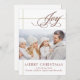 Tarjeta de vacaciones elegante con letra a mano que dice Alegría. Envía hermosos saludos familiares con esta elegante tarjeta de Navidad dorada y roja. La tarjeta presenta una hermosa Alegría escrita a mano en rojo con líneas doradas que se intersectan, recordando un regalo elegante. Agrega fácilmente tu foto familiar o la foto de tu nuevo bebé en lugar de la foto de stock, para un toque personal.