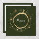 Difunde el mensaje de paz en esta temporada de fiestas. Un hermoso diseño moderno de estrella dorada rodea la palabra Paz. Fondo verde. Agrega tu propio mensaje personal. Tarjeta perfecta para enviar a familiares y amigos para hacerles saber que estás pensando en ellos durante la temporada de fiestas.